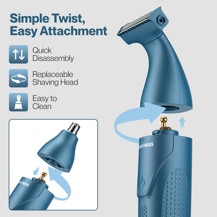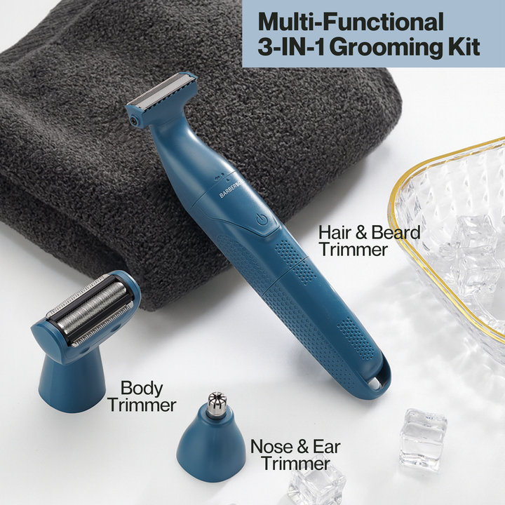 - All-in-One Precision Grooming Tool: The BarberBoss 3-in-1 Men’s Precision Trimmer is a complete grooming solution featuring three interchangeable heads: one for beard and hair , one for nose and ears, and another for body hair. A compact kit that keeps you styled from head to toe with ease.