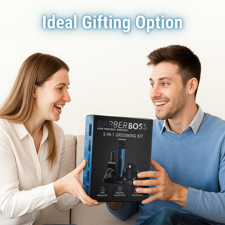 BarberBoss QR-6020 5 in 1 Beard Trimmer for Men, Hair Clipper, Body Groomer, Nose & Ear Trimmer, Men’s Grooming Kit, Cordless Rechargeable Clippers