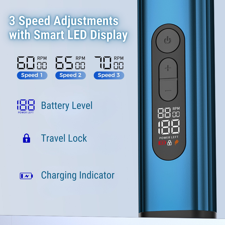 - Smart LED Display & 3 Speed Settings: Bright LED screen shows battery level, speed mode, and charging reminders. Easily adjust between 3 speeds using the “+” and “–” buttons to suit fine, normal, or thick hair for precise results every time.
