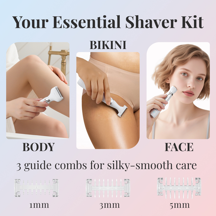 - Precision Attachments: Includes 3 guide combs (1mm, 3mm, 5mm) to achieve your preferred trim length in the bikini area, plus a protective cap to keep the shaver head clean, safe, and ready for use whenever you need it.