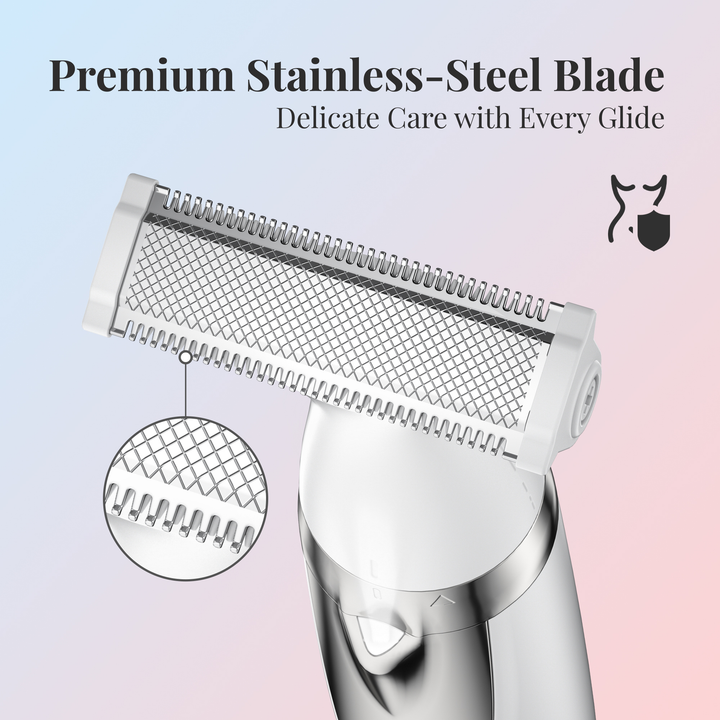 - Gentle on Sensitive Skin: The Durable Dual-sided stainless steel blades with protective foil mesh allow shaving in both upward and downward motions, gliding smoothly across the skin for a close finish without nicks, pulling, or irritation. Ideal for delicate areas such as the bikini line, underarms, and face, this lady shaver provides a comfortable, skin-friendly grooming experience every time.